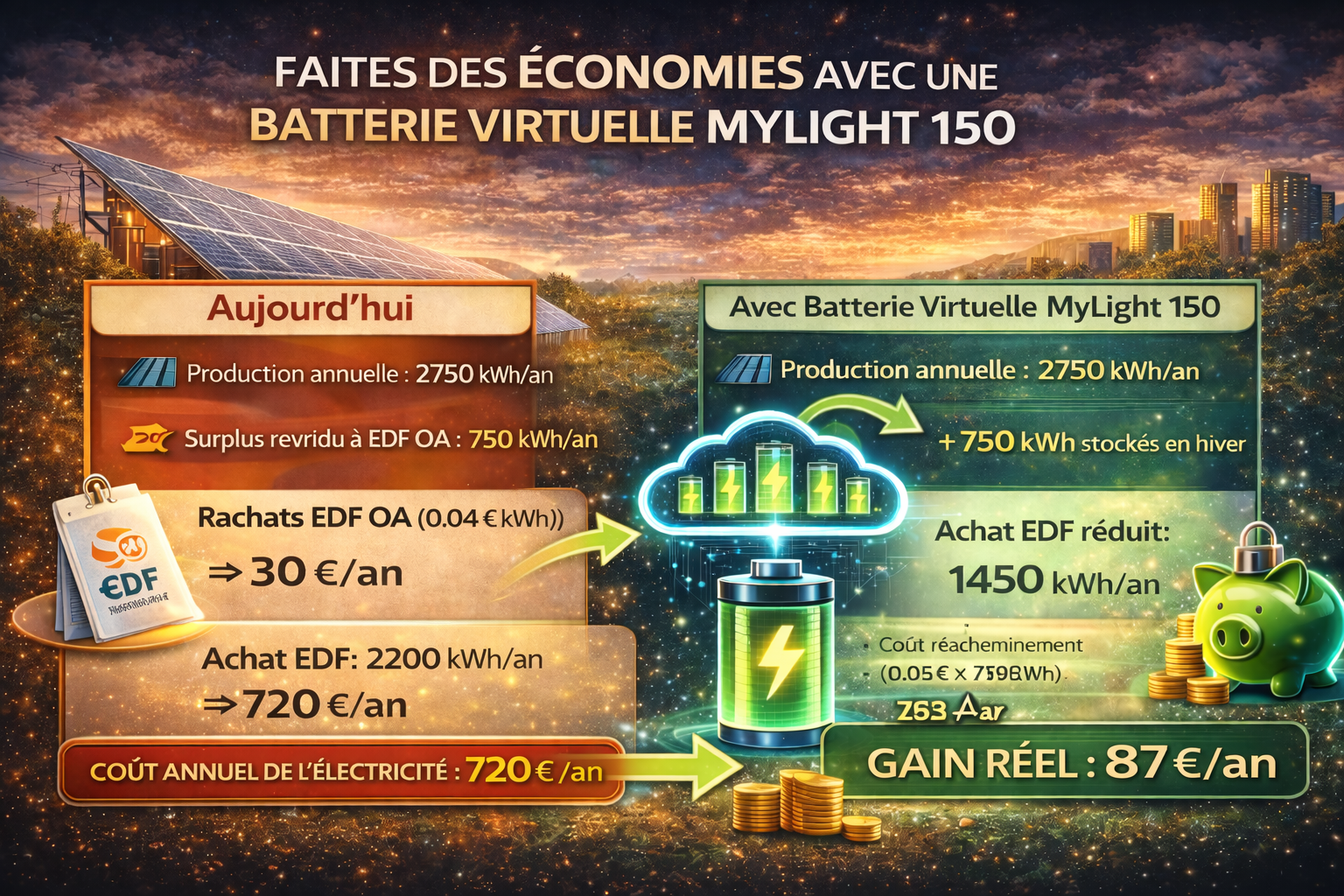 Un particulier producteur de 2750 kw / utilise la batterie virtuel de chez Mylignt