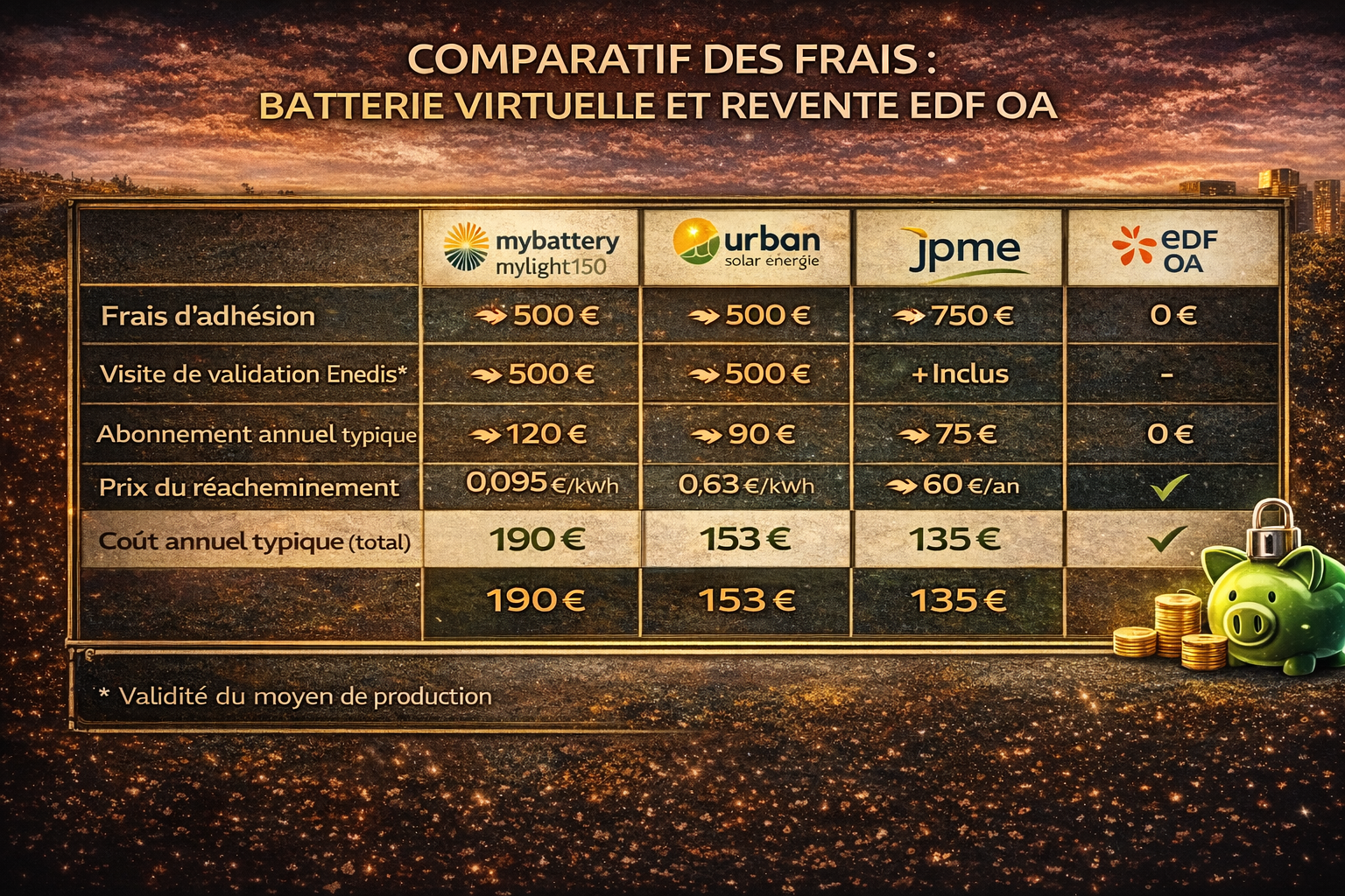 | Batterie virtuelle | Valorisation souple du surplus | Contrats et frais à comparer avec précision |